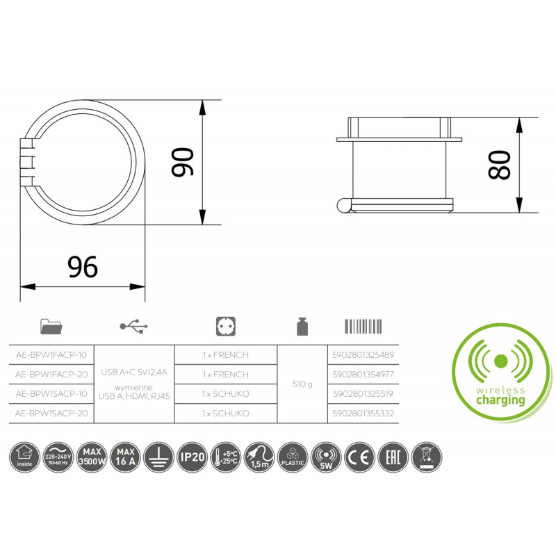 - tri zamenljive utičnice (HDMI, USB-A I RJ-45)