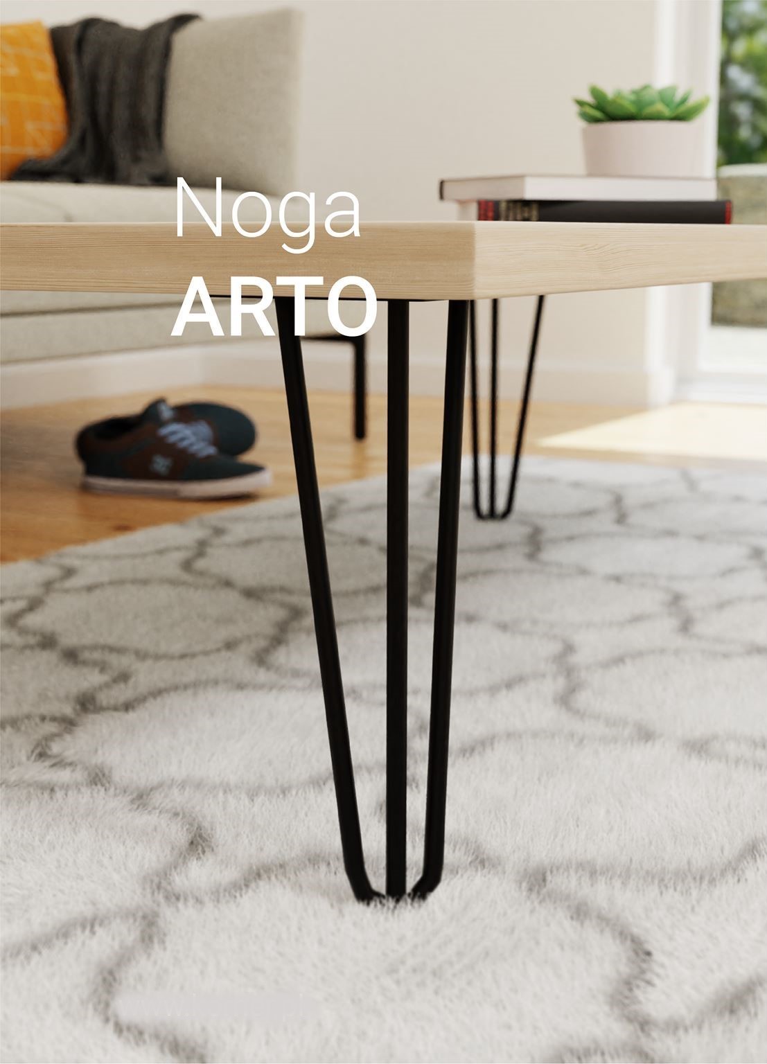 Konstrukcija Arto noge sastoji se od tri šipke prečnika Ø10 mm i PVC stope.
